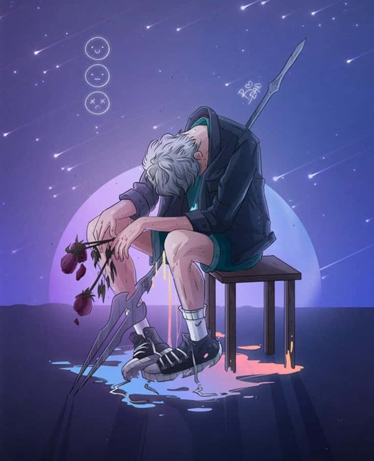 A Lonely Anime Boy, Struggling With Depression. Wallpaper -
