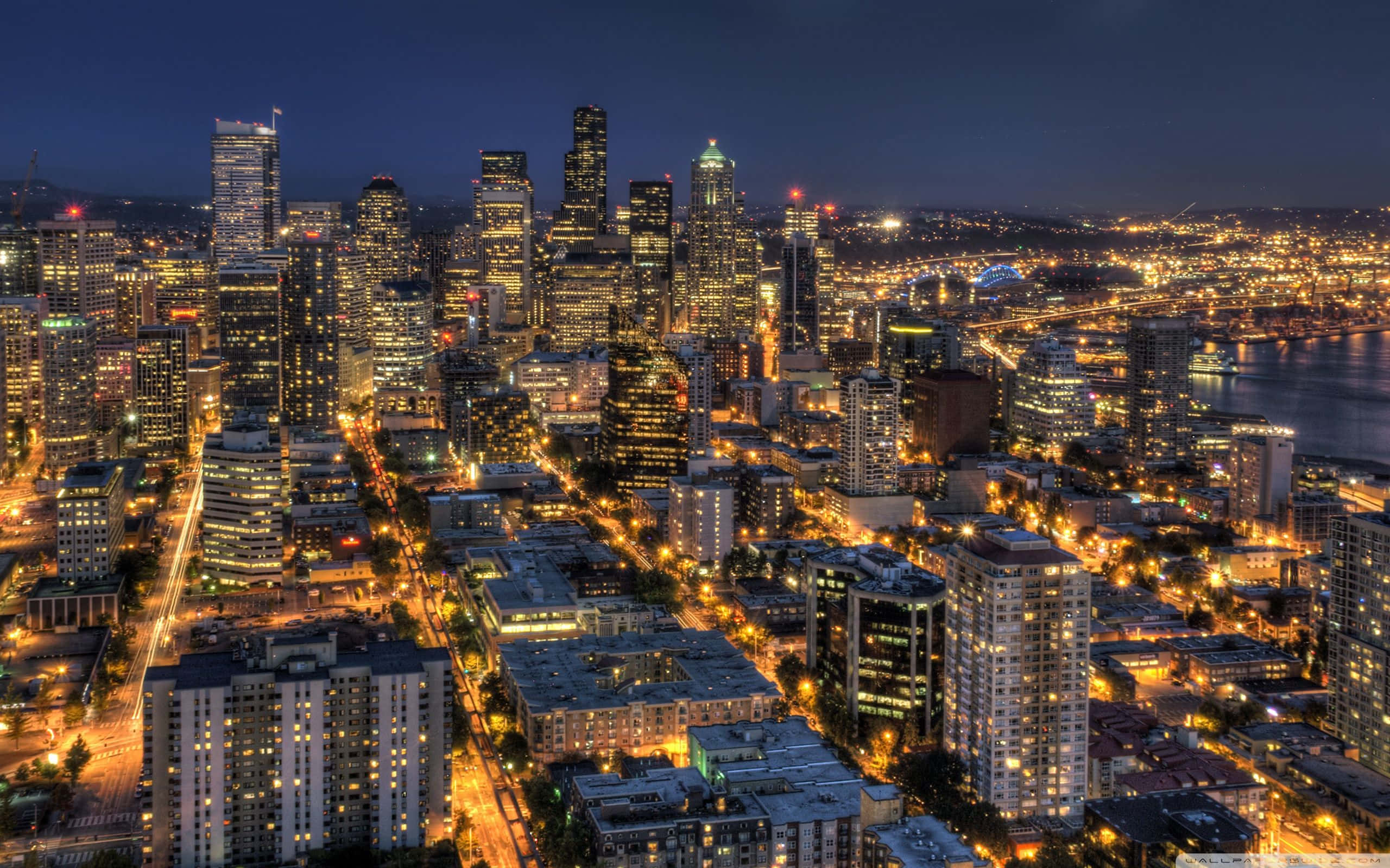 The Emerald City Glows: Seattle At Night Wallpaper -