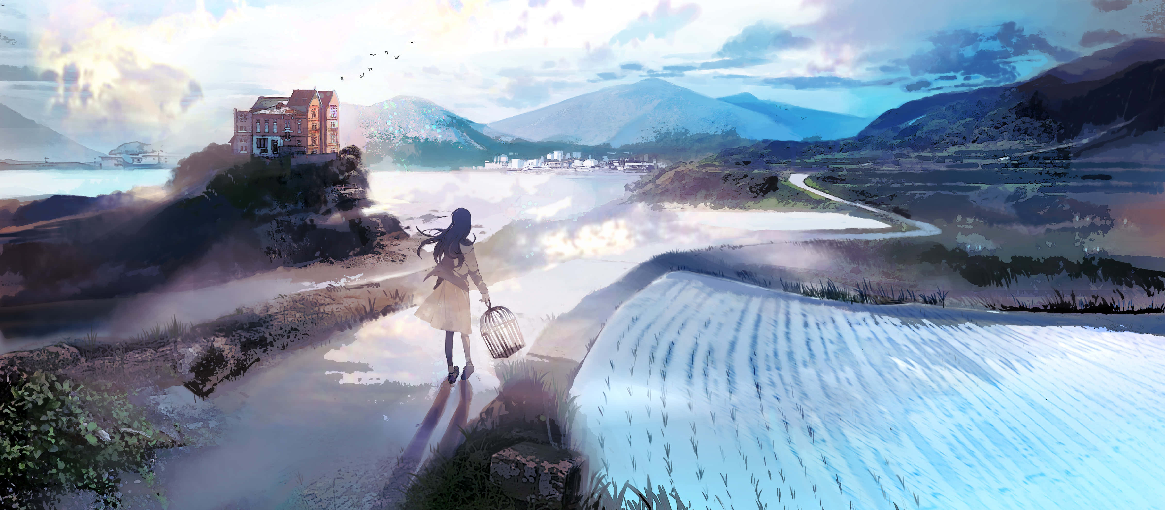 Serene Anime Landscapewith Character Wallpaper