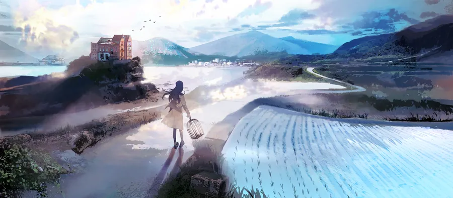 Serene Anime Landscapewith Character -