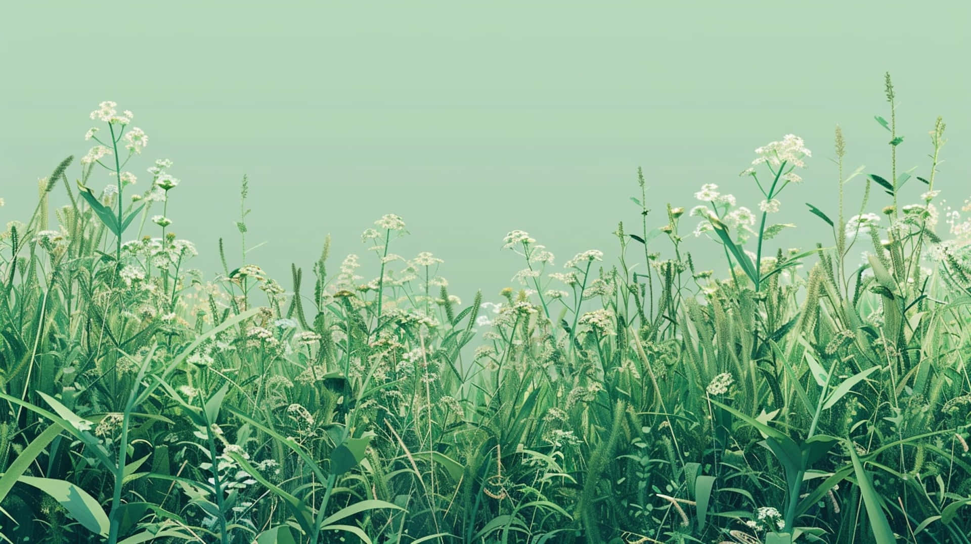 Green Misty Meadow Aesthetic Wallpaper -