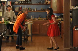 Sitcom New Girl's Cast Behind Apartment's Kitchen Wallpaper -