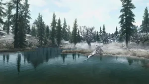 Skyrim Landscape Lake With Big Log Wallpaper -