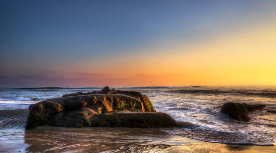 Enjoy A Peaceful View Of The Sunrise Over The California Coast. Wallpaper -