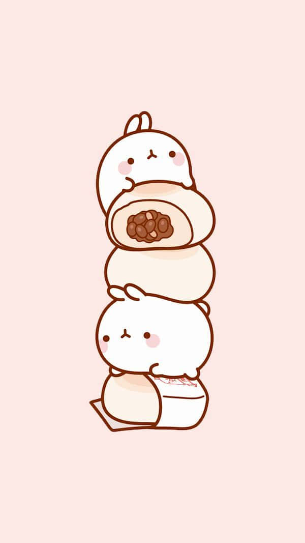 Kawaii Bunny Characters Pastel Background Wallpaper -