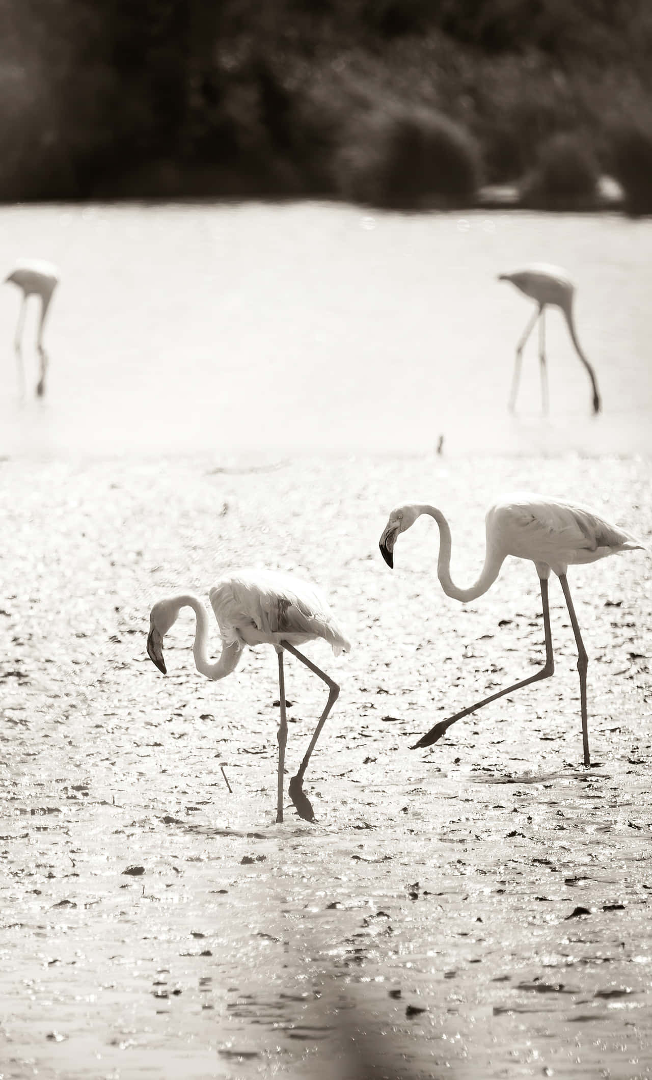 A Group Of Flamingos Are Standing In A Pond Wallpaper -