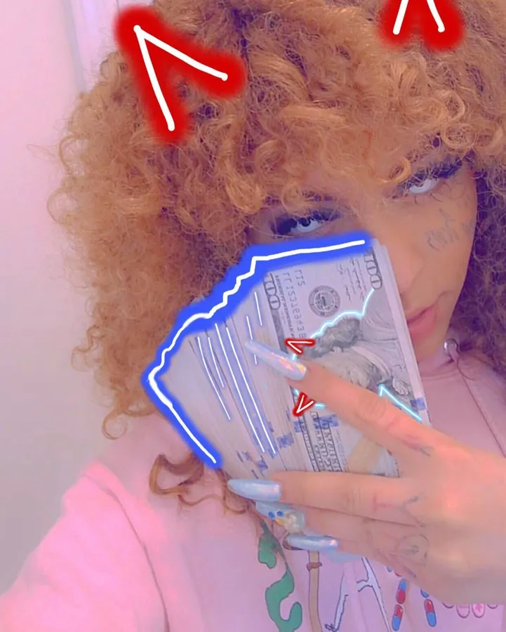 A Girl Laying On A Bed With A Bunch Of Money Wallpaper -