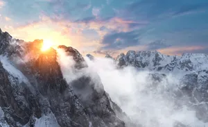 Take In The Stunning Mountain-scape At Sunrise Wallpaper -