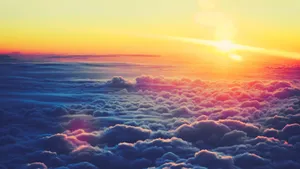 Sunset Over Clouds With Purple Sky Wallpaper