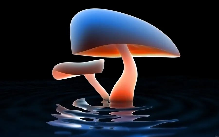 Surreal_ Mushrooms_ Reflecting_on_ Water_ Art Wallpaper
