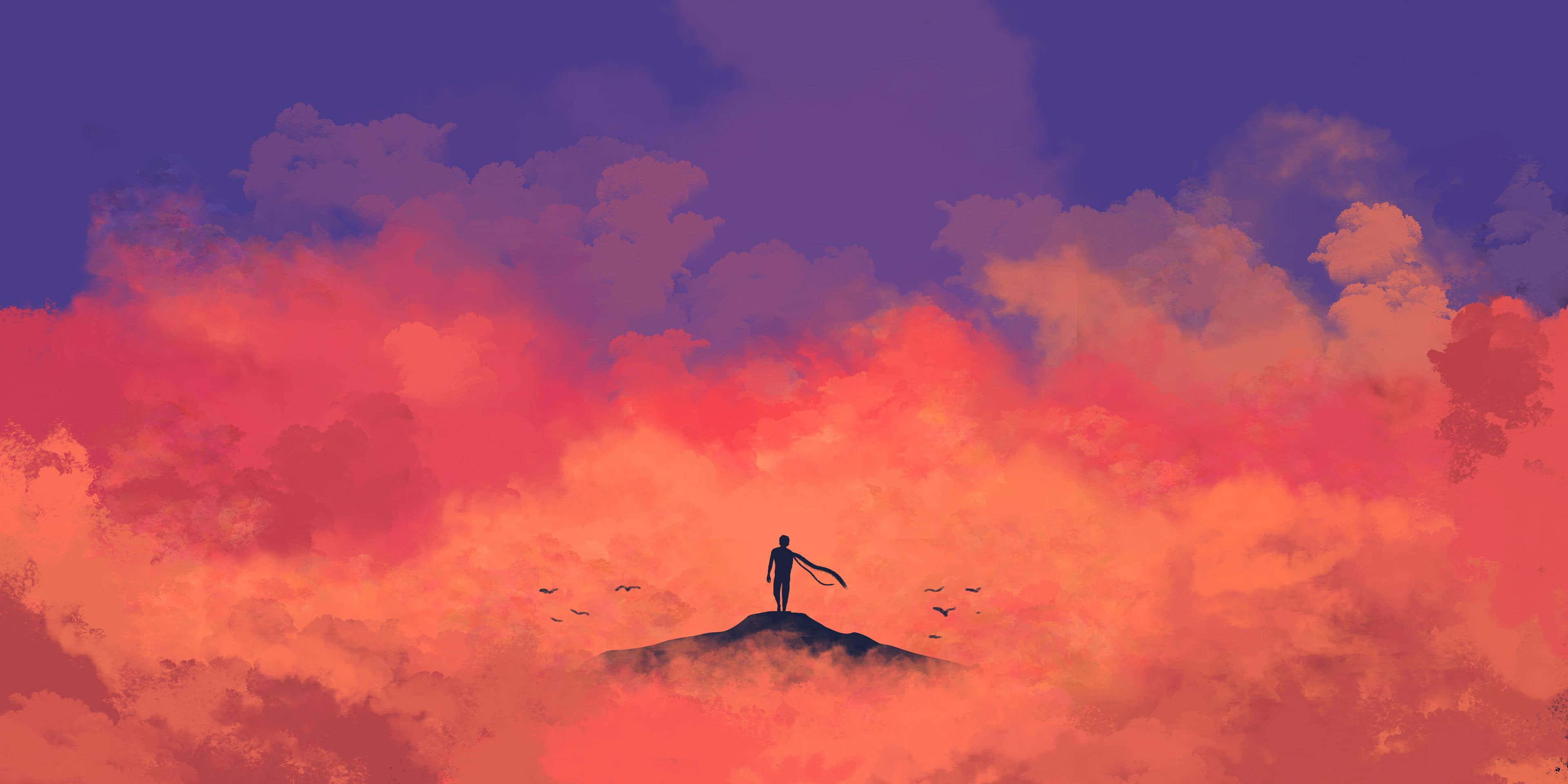 Aesthetic Red Anime Laptop Wallpaper -