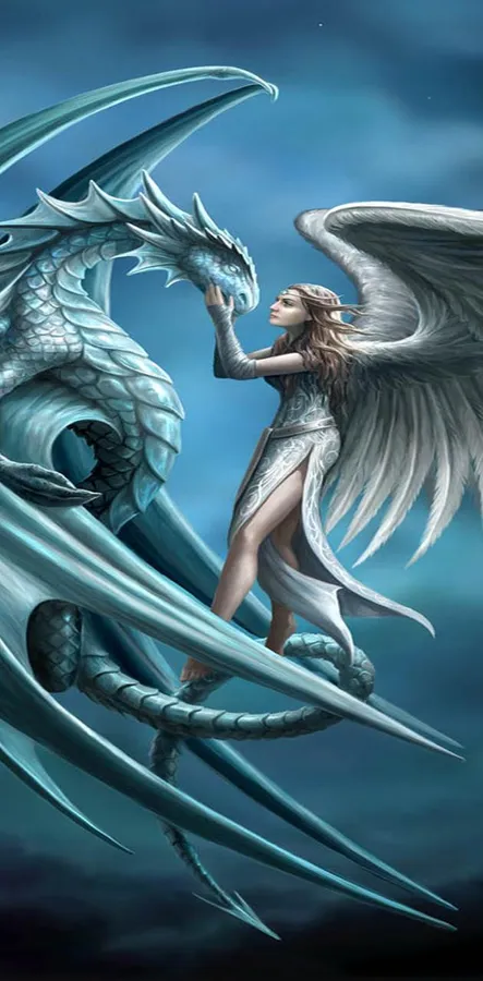 A Dragon And A Woman Fighting In Front Of A Fire Wallpaper -