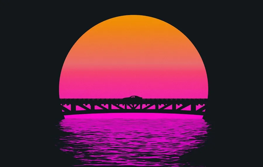 80s Vaporwave Neon Sunset Wallpaper -