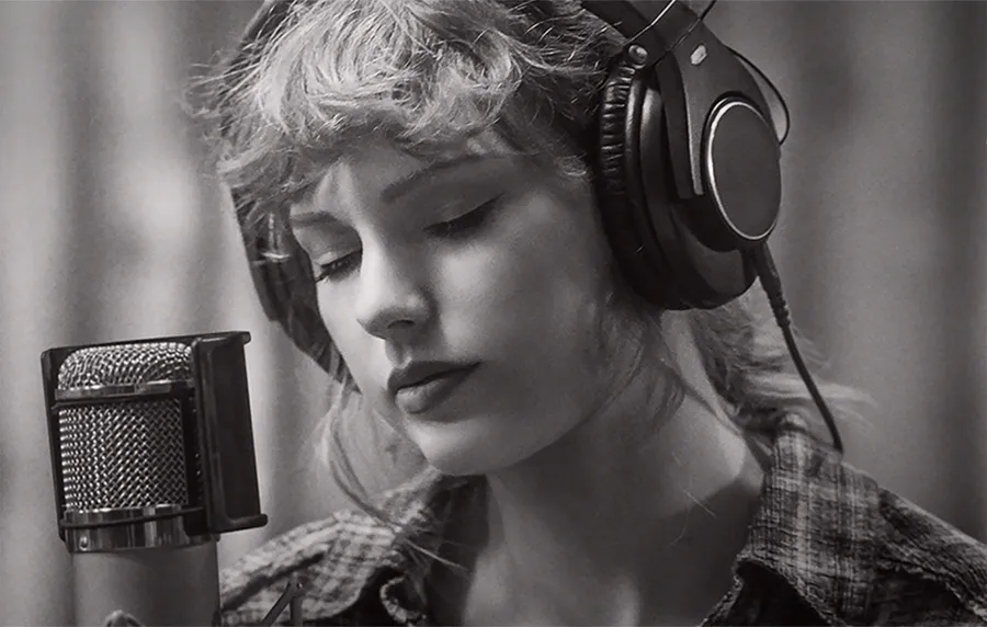 Taylor Swift Looks Into The Camera During The Recording Of 'folklore', An Album She Released In 2020 Wallpaper -