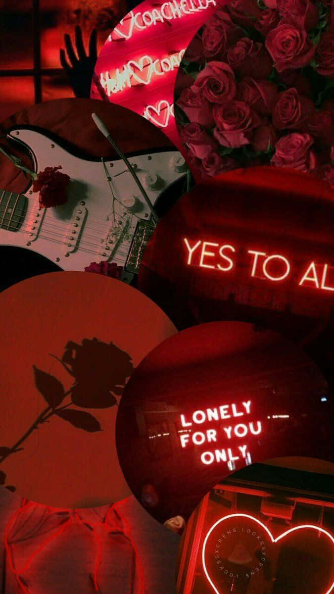 A Collage Of Red, Black, And White Photos Wallpaper -