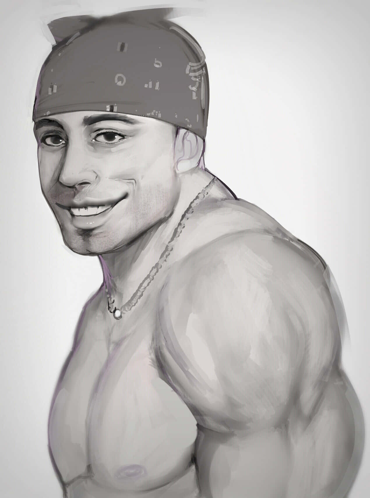 Shirtless Ricardo Milos Cartoon Sketch Wallpaper -