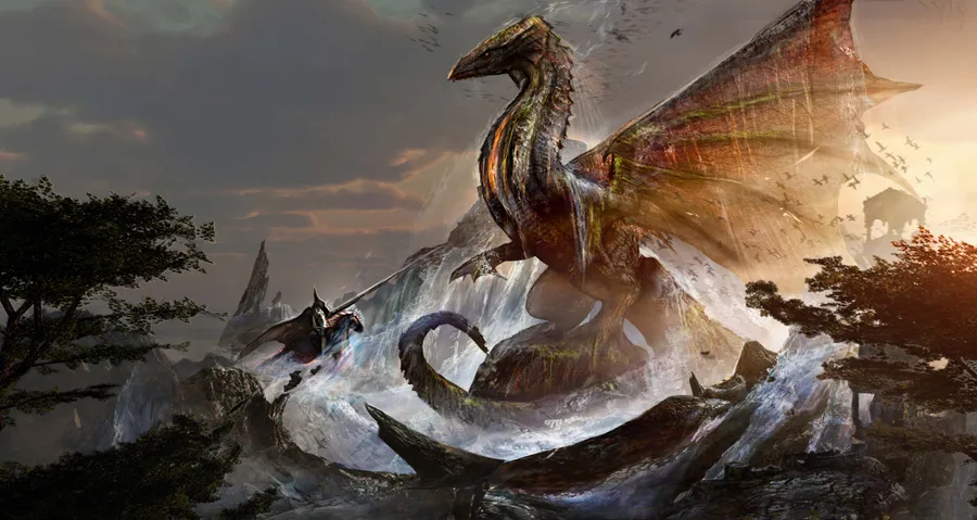 "the Fiery Breath Of A Mythic Dragon Envelops An Unsuspecting Town." -