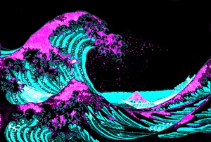 A Painting Of A Great Wave With Colorful Dots Wallpaper -