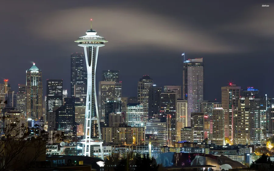 Breathtaking Skyline Of Seattle At Night Wallpaper -