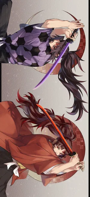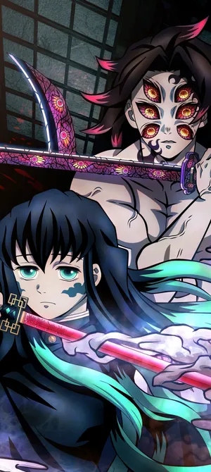 Fire And Ice Clash As Demon Slayer Kokushibo Unleashes His Two Swords Wallpaper -