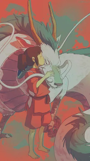 Phone Your Way In The Anime World Of Haku And Spirited Away Wallpaper -