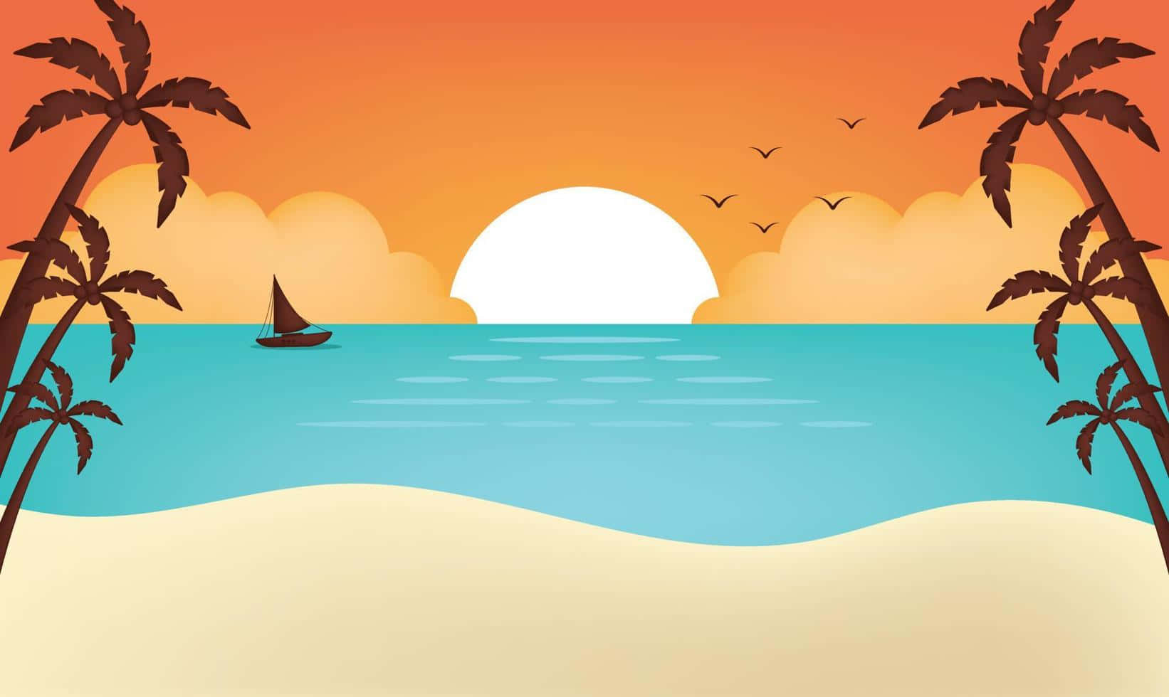 Tropical Beach Sunset Palm Trees Wallpaper -