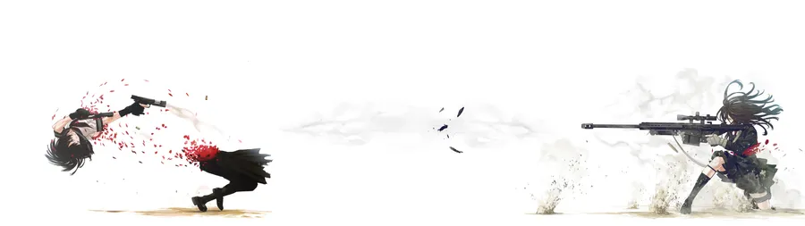 Related Two Anime Girls With Guns And Blood On Their Faces Wallpaper