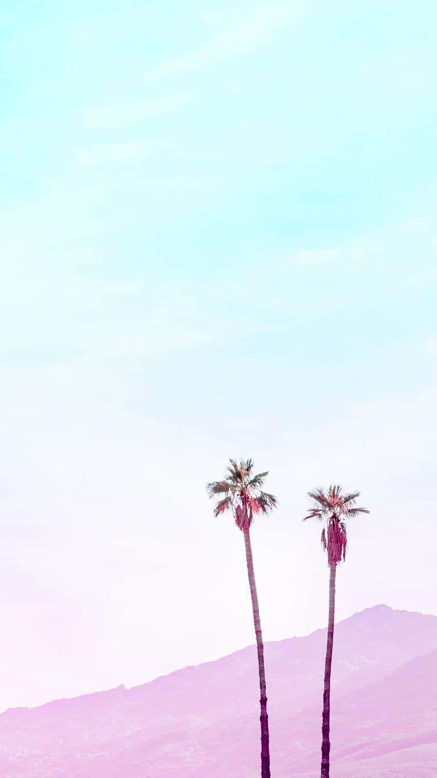 Two Palm Trees In Front Of A Mountain Wallpaper