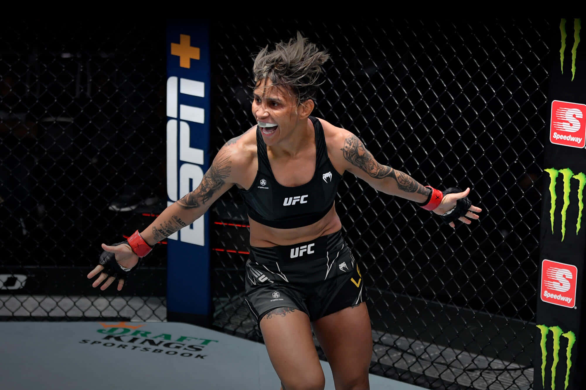 Amanda Lemos Triumphant In The Ufc Octagon Wallpaper -