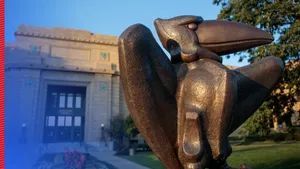 "the Iconic Bronze Jayhawk Statue On The University Of Kansas Campus." Wallpaper -