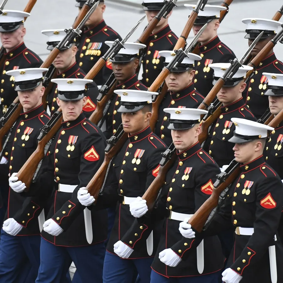 Us Marines Marching In Formation With Rifles Wallpaper