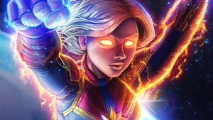 Feel The Power Of Captain Marvel From Your Screen Wallpaper -