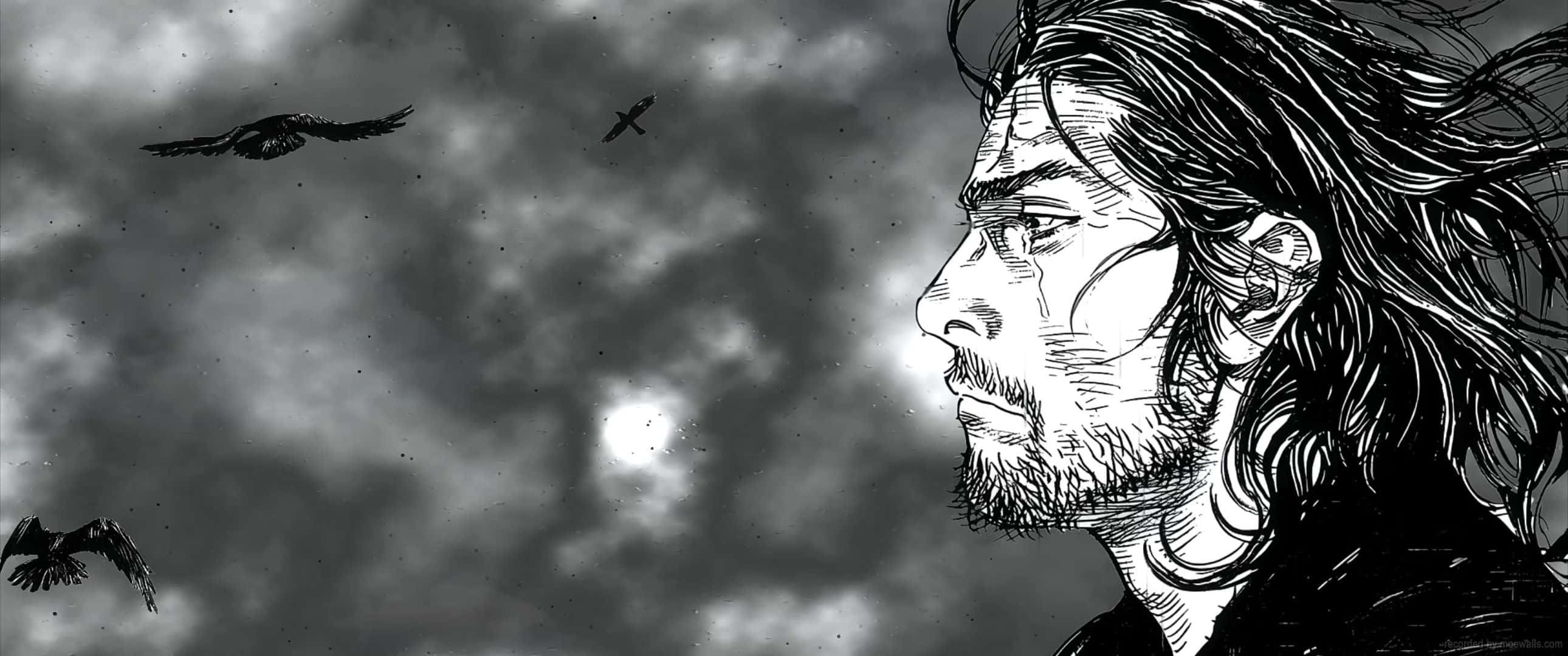 Vagabond Manga Characterwith Birds Wallpaper -