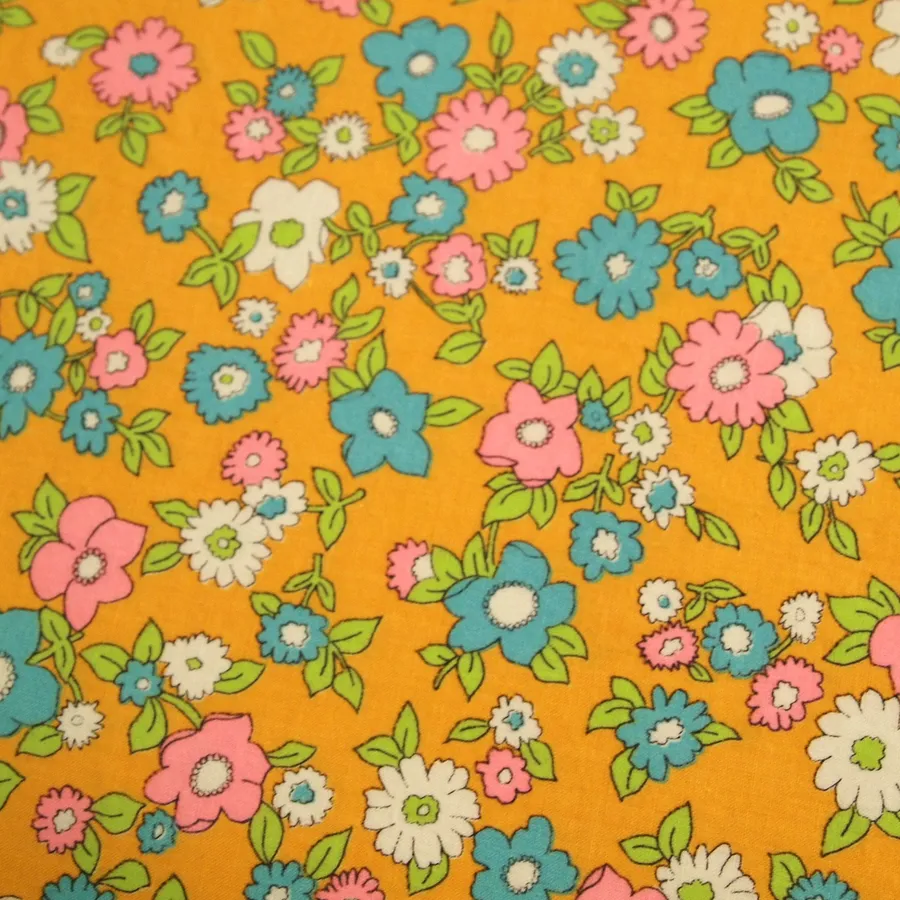 Vintage 60s Pink Blue And White Flowers -