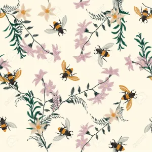 A Floral Pattern With Bees And Flowers Wallpaper -