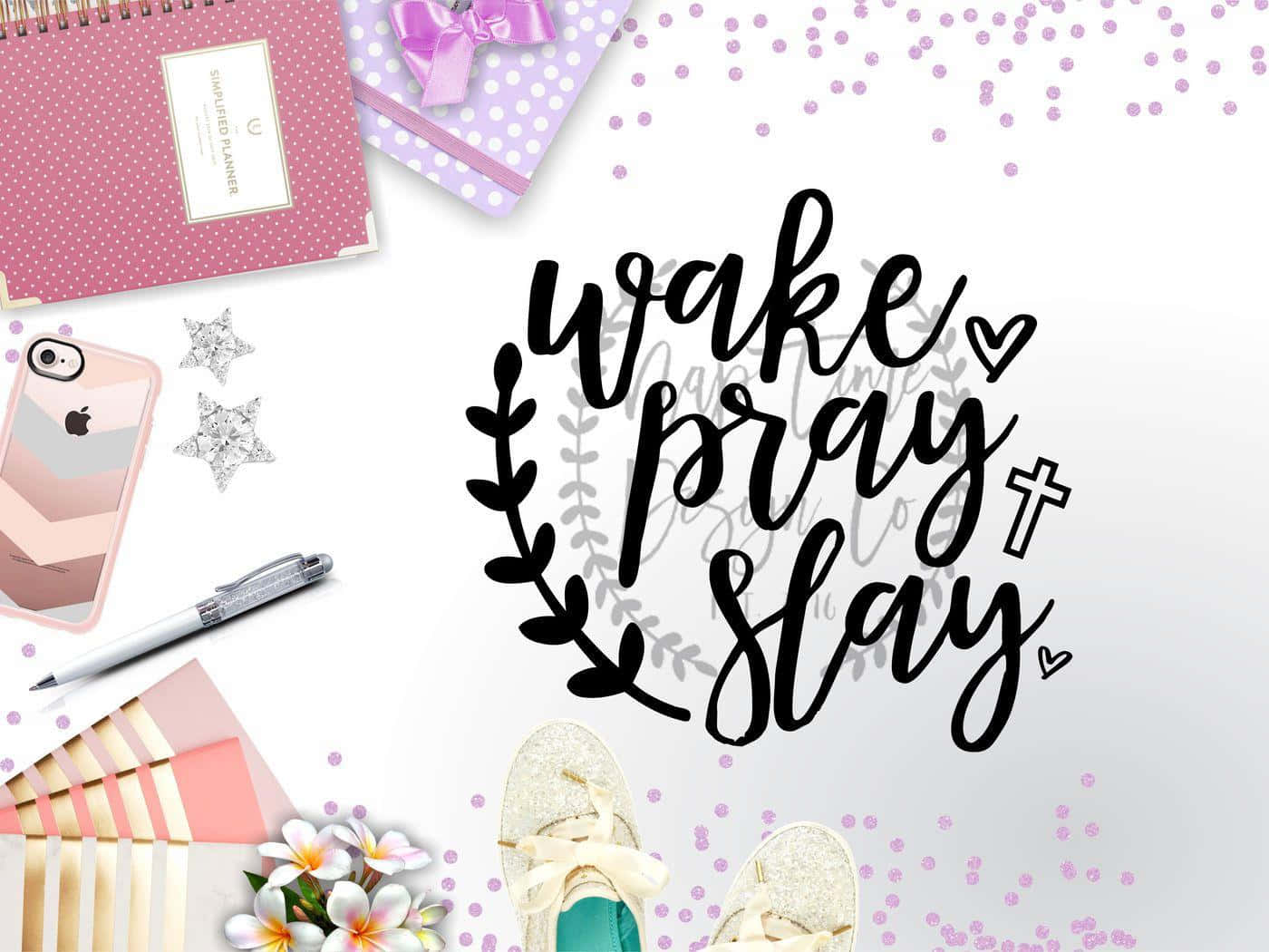 Wake Pray Slay Inspirational Quote Wallpaper -