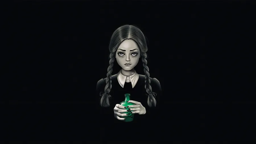 Mysterious Wednesday Addams Illustration Wallpaper -