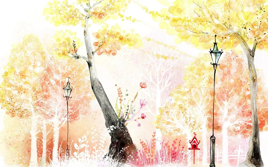 Whimsical Autumn Park Illustration Wallpaper