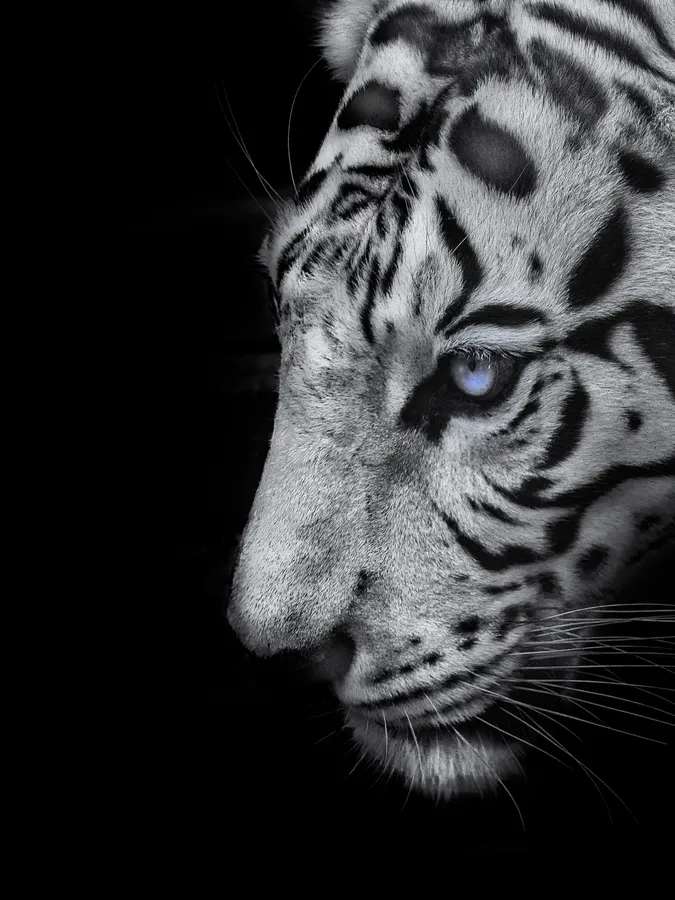 A White Tiger With Blue Eyes In Black And White Wallpaper -