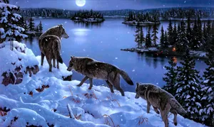 A Painting Of Wolves In The Snow Wallpaper -