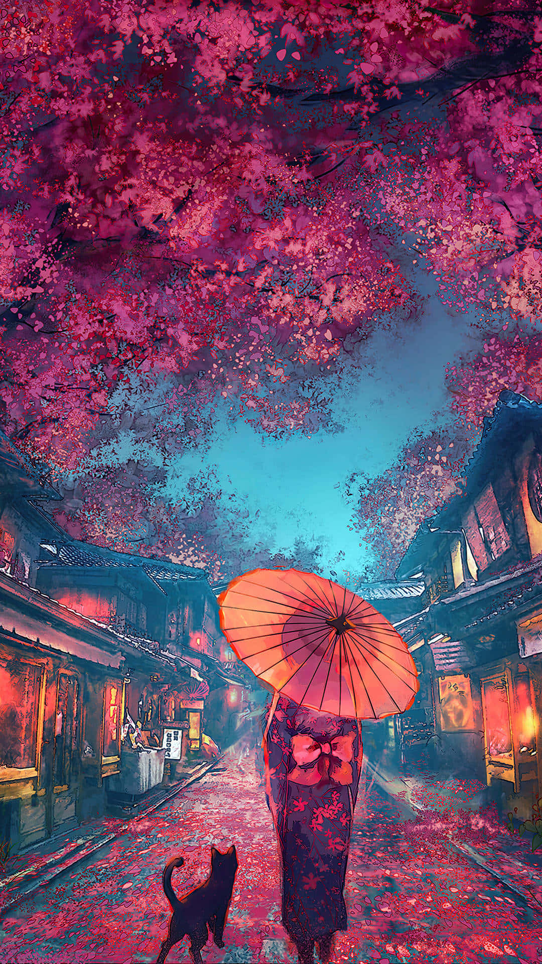 Woman With Kimono Under A Cool Japanese Tree Wallpaper