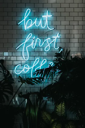 "but First Coffee" In Neon Blue Iphone Wallpaper -