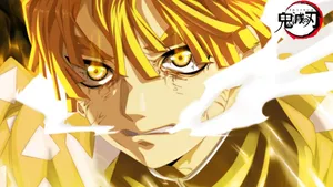 A Shiny Yellow Anime Character Roars In Fury Wallpaper -